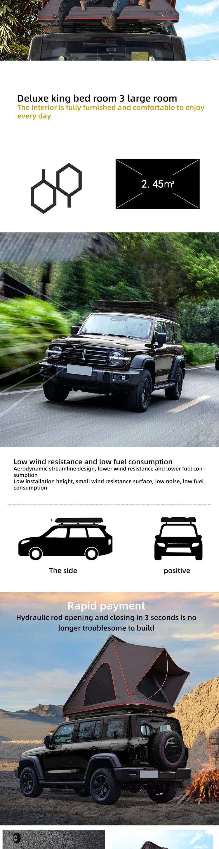 ✅【PREMIUM MATERIAL & DURABLE USE】The rooftop tents for camping is made of rugged ABS hard shell and special Oxford PU waterproof coating, coupled with reinforced aluminum alloy /ABS base to resist strong wind and rain. The main cloth is made of 280TC 2000 waterproof lattice cloth with double doors, With aluminum frame