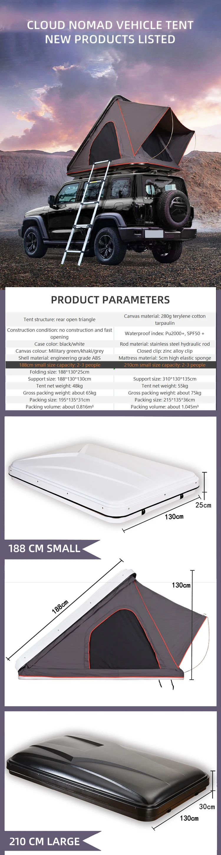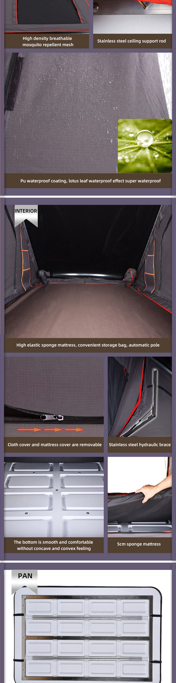 Easy to set up and take down; heavy duty PVC cover keeps tent dry and free from UV rays when not in use.This hard shell roof tent will provide you with a safe and comfortable place to rest.
