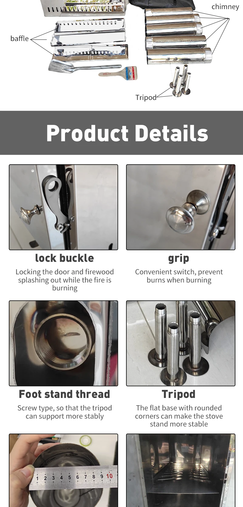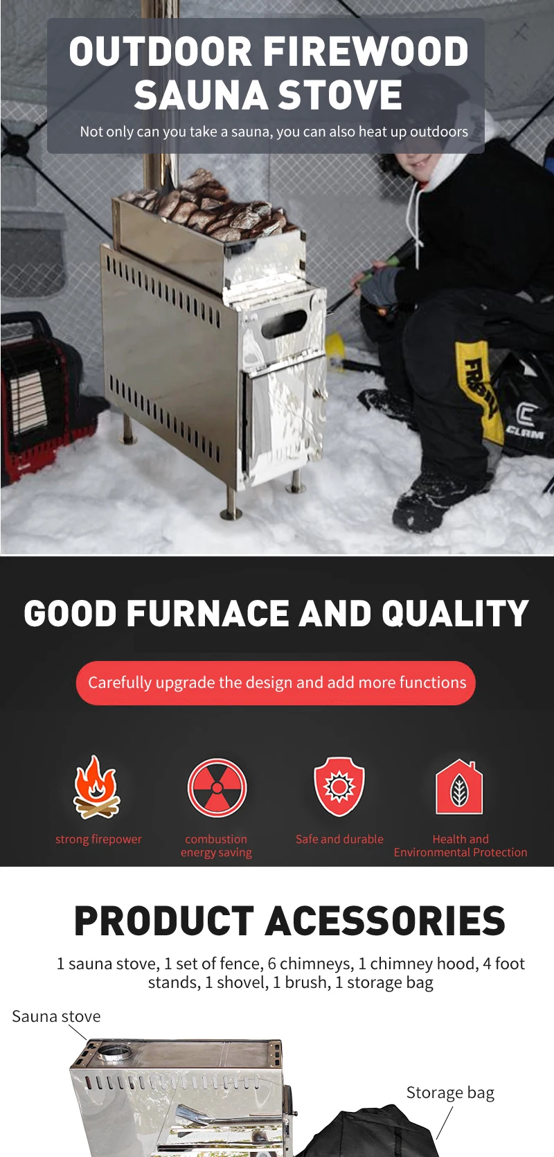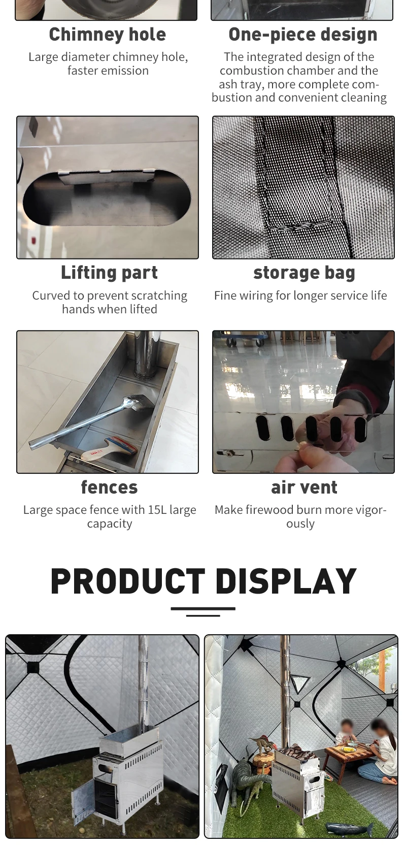 Create AccountNew Design Factory Price Portable Stainless steel Wood Stove Sauna Tent Stove with Long Chimney for Outdoor Picnic Ice Fishing